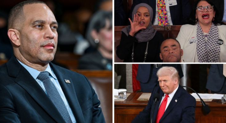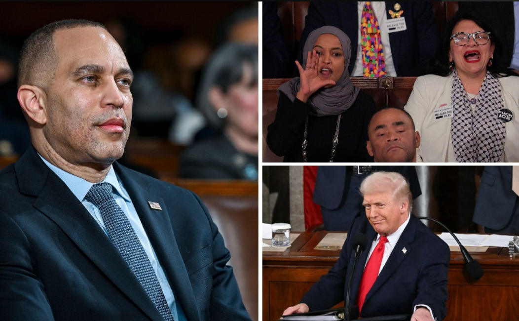 House Minority Leader Hakeem Jeffries (D-NY) struggled to maintain control over his conference during a lively State of the Union address on Tuesday night. During the speech, Donald Trump provoked Democrats, leading to numerous outbursts and taunts from the audience.