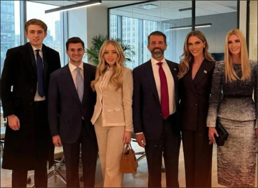 Observers were especially struck by the presence of 19-year-old Barron Trump, who has largely stayed out of the public spotlight in recent years. Currently a student at New York University’s Stern School of Business, Barron made a rare appearance alongside his siblings for the occasion. Positioned at the end of the group in the photo, he stood noticeably taller than everyone around him. Social media users quickly began commenting on his height, with many expressing surprise at how much he has grown since the public last saw him regularly during his father’s presidency.